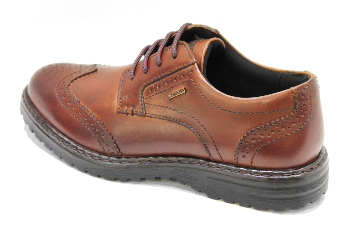 Smart casual lace-up waterproof shoes crafted in high quality leather featuring mildly tractor soles and a cushioned removable footbed. The perforated brogue details make this style versatile enough to wear at work and at occasions requiring smark casual dressing. Thanks to the innovative TopDryTex technology, your feet will remain dry and comfortable, no matter the weather. This breathable feature ensures that you can enjoy your day without any discomfort.